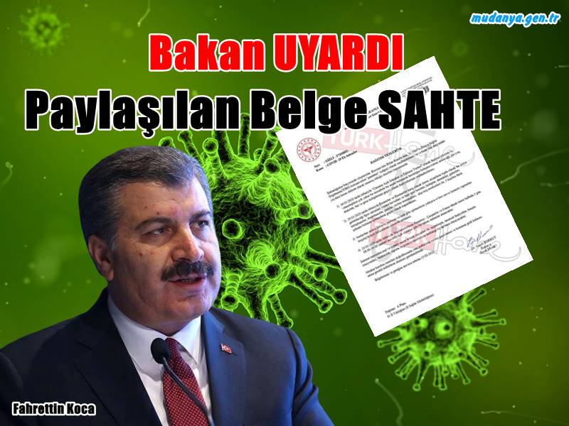 Sağlık Bakanı Fahrettin Koca sosyal medya ve whatsapp üzerinden yapılmak istenen algı oprerasyonu hakkında twitter hesabın dan açıklama yaptı. Bakan Koca GİZLİ damgasıyla paylaşılan Coronavirüs tedbrilerine ilişkin belgenin sahte olduğunu ve iç karışıklık çıkarmaya yönelik olduğunu vurgulayarak sadece devletimizin yaptığı açıklamaların dikkate alınması gerektiği konusunda uyardı.
