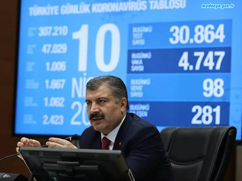 Toplam test sayımız 307 bin 210 oldu. Bugün 30 bin 864 yeni test yaptık. 4 bin 747 yeni vakamız var. Bugün vefat eden 98 vatandaşımızla beraber toplam vefat sayımız 1006 oldu. Bugün iyileşen 281 vakamızla beraber 2 bin 423 hastamız iyileşti.