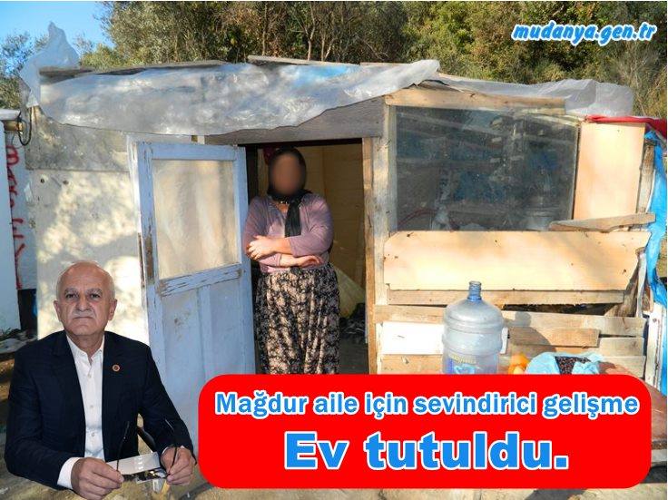 Mudanya Karanlıkdere mevkiinde ev kirasını ödeyemediği için bir yıldır 17 yaşındaki oğluyla derme çatma barakasında yaşam mücadelesi veren T.T ve oğlu için sevindirici gelişme. MHP Mudanya Belediye Meclis Üyesi Bület ERDEN "Ve bir denizyıldızı daha kurtarıldı. Hava soğuk elimizi çabuk tutarak, hızlı bir şekilde mağdur aileyi soğuk ve çamurdan alıp sıhhı bir eve naklediyoruz. Emeği geçen herkese teşekkür ediyorum" dedi.
