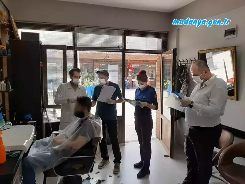 Mudanya Esnaf ve Sanatkarlar Odası ve Toplum Sağlığı Merkezi ekipleri, Mudanya Belediyesi Zabıta Müdürlüğü ekipleri, ile birlikte berber, güzellik salonu, kuaför gibi iş yerlerine denetim yaptı.