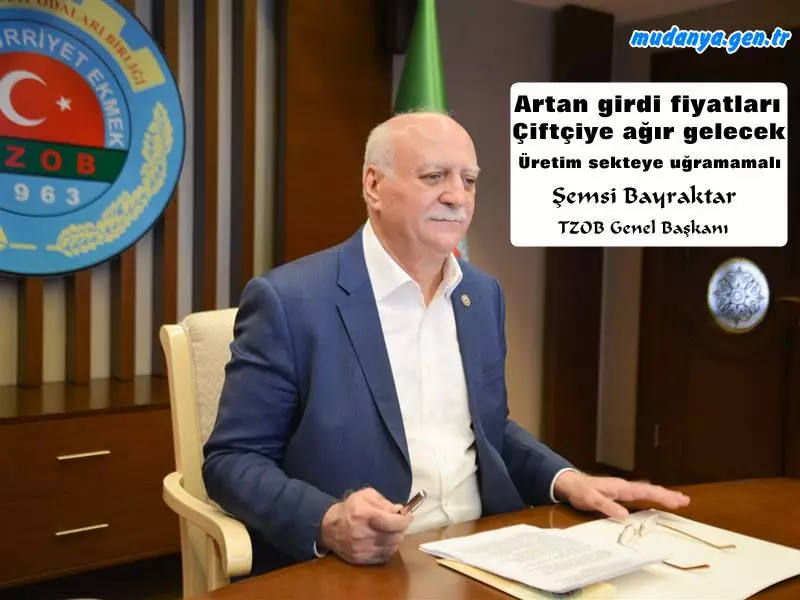 Türkiye Ziraat Odaları Birliği (TZOB) Genel Başkanı Şemsi Bayraktar, başta gübre olmak üzere yem, zirai ilaç, elektrik ve sulama gibi girdi fiyatlarının son günlerde önemli ölçüde artış gösterdiğini bildirerek, ”ürün maliyetleri artacak, üretici üretimde sıkıntı çekerken, artan gıda fiyatları tüketicilere ağır gelecektir” dedi.
