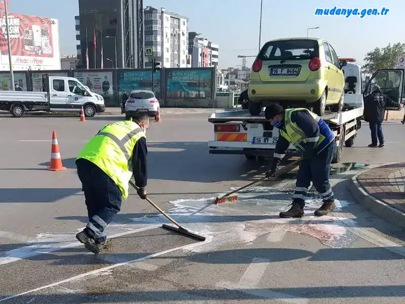 Trafik güvenliğinin sağlanması için emniyet birimleri özverili bir çalışma sergilerken, Bursa Büyükşehir Belediyesi’nin Ani Müdahale Ekibi de ellerinde fırçalarla trafik güvenliği için 7/24 kesintisiz hizmet veriyor.