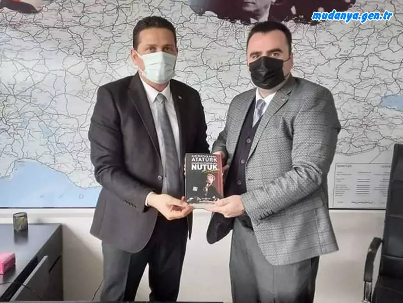 İYİ Parti Mudanya İlçe Teşkilatı Adına; İlçe Başkanı Hüseyin HATİPOĞLU Mudanya Şöförler Odası Başkanı Hikmet İLHAN, Mudanya Karayolu Yük Taşıma Kooperatif Başkanı Servet ŞAHİNER, Mudanya Servisçiler Kooperatifi Başkanı Ersin MECİT'e Ülkemizin Kurucusu Gazi Başkomutan Mustafa Kemal ATATÜRK'ün kaleme aldığı Nutuk Kitabını
