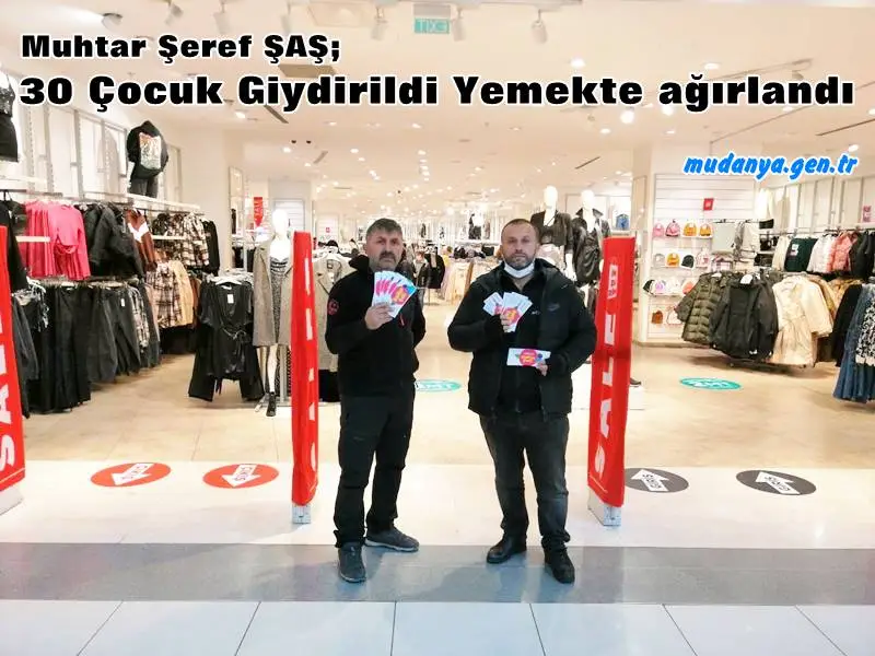 Şükrü Çavuş Mahallesi Muhtarı Şeref Şaş, mahallesindeki ihtiyaç sahiplerine yardım elini hayırseverlerin desteğiyle uzatmayı sürdürüyor. İsmini vermek istemeyen bir hayırsever 30 ailenin çocuklarını Korupark'ta ağırladı. Defacto giyim mağazasında tüm çocukların giyim ihtiyaçları karşılandıktan sonra birlikte yemek yenildi.