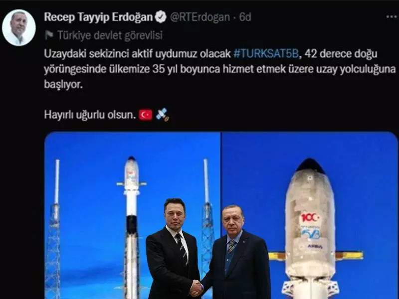 Türkiye'nin yeni uydusu Türksat 5B, Türkiye saatiyle 06.58’de ABD'nin Florida eyaletinde bulunan Cape Canaveral Üssü'nden uzaya fırlatıldı. Cumhurbaşkanı Erdoğan, "Sayın Musk'ı ve SpaceX firmasını Türkiye karşıtı lobilerinin şantajına ve baskısına boyun eğmediği için şahsım ve milletim adına tebrik ediyorum" dedi.