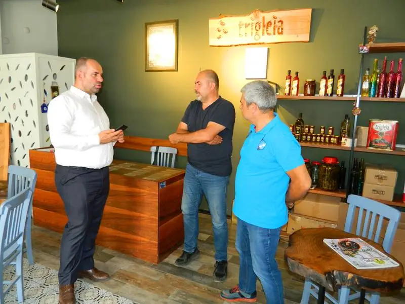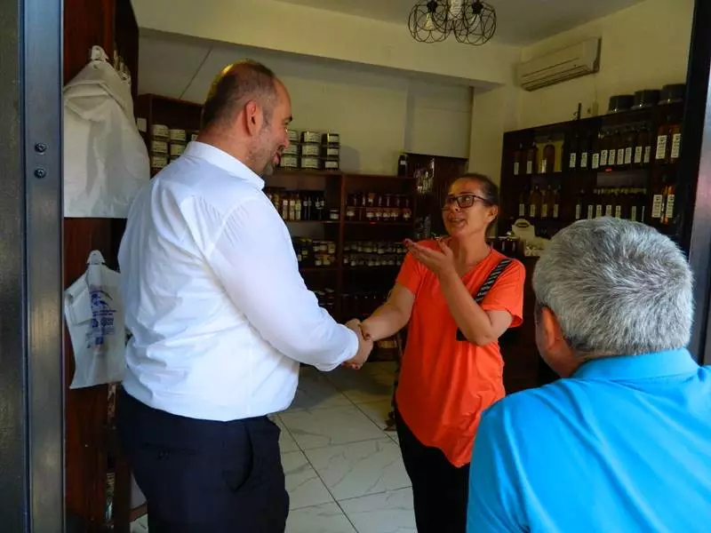 Esnaf Başkanı ABDULAZİZOĞLU Yönetim Kurulu Üyeleri Belgin ADIYAMAN, Murat KARA ve Başkan Vekili Esat DEMİRCAN ile birlikte Tirilye esnafını ziyaret ederek hasbihal etti, sorunları dinleyerek notlar aldı.
