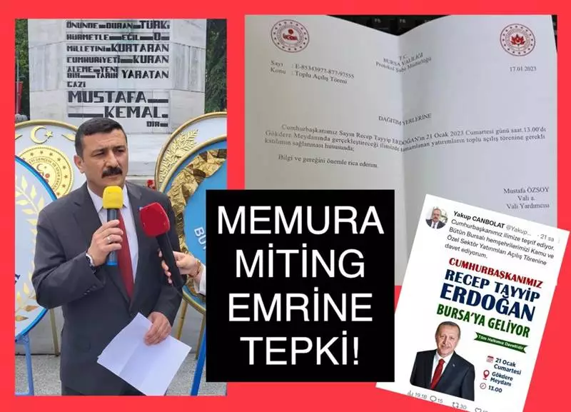 Bursa Valisi Yakup Canbolat’ın onay verdiği Valilik Protokol Müdürlüğü’nün ilgili mitinge çağrı yazısı aynen şöyle.