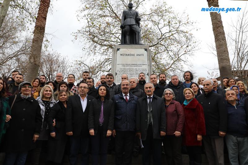 Ulu Önder Mustafa Kemal Atatürk’ün yakın silah arkadaşı, ikinci Cumhurbaşkanı, Türkiye Cumhuriyeti’nin kuruluş temellerinin atıldığı Mudanya Mütarekesi’nin başarılı devlet adamı İsmet İnönü, vefatının 46’ıncı yıldönümünde Mudanya’daki anıtı önünde anıldı. Anma töreni, Mütareke Meydanı’ndaki İnönü Anıtı’na çelenk sunumu, saygı duruşu ve İstiklal Marşı’nın okunmasıyla başladı. İnönü’yü anma programına CHP Bursa Milletvekili Nurhayat Altaca Kayışoğlu, Mudanya Belediye Başkanı Hayri Türkyılmaz, CHP Mudanya İlçe Başkanı Ömer Aydın, CHP ilçe örgütü ve Mudanyalılar katıldı. Mudanya Mütarekesi’nin İsmet İnönü’nün kararlı ve dik duruşuyla kazanılmış siyasi bir zafer olduğuna değinen Mudanya Belediye Başkanı Hayri Türkyılmaz, “’İktidarda değil, itibarda kalmak önemlidir’ diyerek dünya tarihinde örneğine rastlanmayan bir şekilde ülkemizi tek partili dönemden çok partili döneme taşıyan milli mücadele kahramanı İsmet İnönü’nün aramızdan ayrılışının 46. yılındayız. İsmet Paşa bir asker olarak oturduğu masadan Lozan’da Türkiye’yi temsil edecek bir diplomat olarak kalkmıştır. Başta Gazi Mustafa Kemal Atatürk olmak üzere ülkemizin tüm kurucu kahramanlarını saygı ve minnetle anıyorum” diye konuştu.