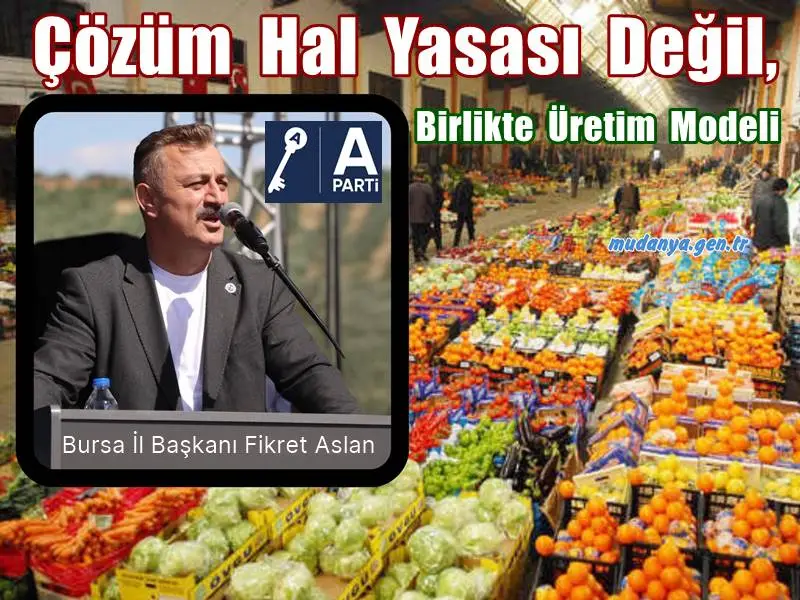 BURSA - A Parti Bursa İl Başkanı Fikret Aslan, kamuoyunda sıkça tartışılan hal yasasına ilişkin önemli açıklamalarda bulundu. Aslan, yasanın tek başına yeterli bir çözüm olmadığını belirterek, temel gıda ürünlerindeki fiyat artışlarının altında yatan asıl nedenlere dikkat çekti ve "Birlikte Üretim Modeli"ni çözüm önerisi olarak sundu.