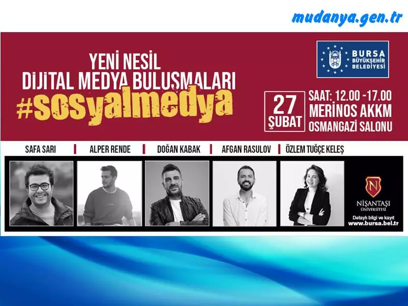 Gençlerin teknolojiyi doğru ve verimli kullanabilmelerine imkân sağlamak amacıyla bugüne kadar birbirinden farklı etkinlikler düzenleyen Bursa Büyükşehir Belediyesi, şimdi de Yeni Nesil Dijital Medya Buluşmaları serisi başlatıyor. İlki ‘sosyal medya’ temasıyla yapılacak etkinlikte sosyal medya fenomenleri Safa Sarı, Alper Rende ve Doğan Kabak, Bursalı takipçileri ile bir araya gelecek.